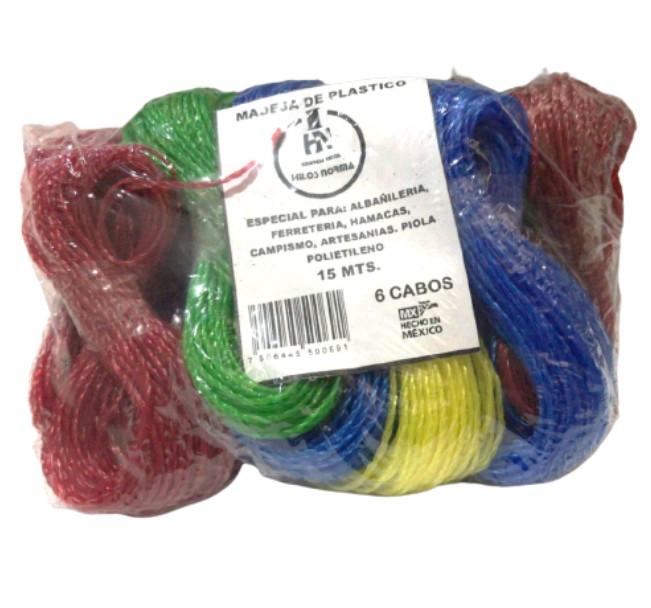 Hilo plastico madeja 15 mts paq 12 pzas