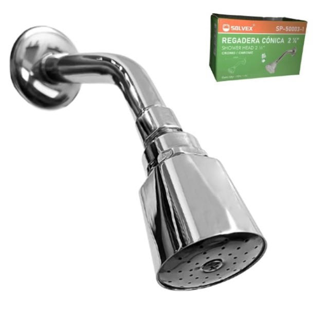 Regadera metalica cromada con brazo y chapeton met. conica