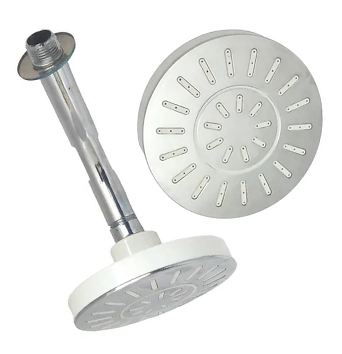 Regadera plastica 4 pulgadas cromo y blanco con brazo y chapeton